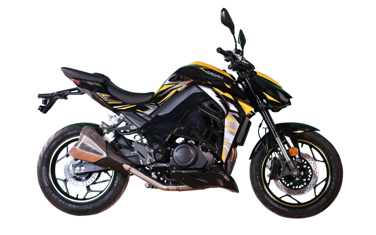 Çift silindirli ve su soğutmalı motoru performanstan ödün vermeden her kilometrede güçlü bir deneyim sunuyor. CNC Alüminyum çelik susturucu içten dışa sağlam ve dayanıklıdır.